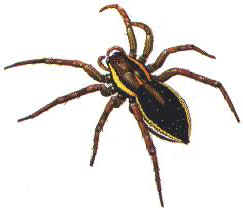 | Dit is de grootste in Nederland voorkomende spin. Hij behoort tot de grote wolfspinnen. Men kan hem vinden aan de oevers van sloten en plassen in bosrijke omgeving en bij moerassen waar plantengroei langs de oevers aanwezig is (geen riet). Bij rustig zonnig weer ligt het dier soms doodstil urenlang op het water, loerend naar prooi. Dit bestaat voornamelijk uit boven en op het water aanwezige tweevleugeligen, maar ook in het water levende dieren staan op zijn menu. Want hij loopt niet alleen over het water maar duikt ook wel eens onder, om zijn prooi onderwater te achtervolgen. Bij gevaar duikt hij onmiddellijk onder. Het dier ziet er mooi uit, het lichaam is donker olijfbruin en dicht fluwelig behaard aan de zijkanten lopen brede geel-witte banden. Hij wordt twee jaar oud en moet in die tijd twee maal overwinteren. In het voorjaar na de tweede overwintering zijn ze geslachtsrijp. Dan vindt ook de paring plaats dit is voor het mannetjes een vrij riskante onderneming. mannetjes zijn ook hier weer veel kleiner dan de vrouwtjes. De man wacht met zijn amoureuze toenaderingen tot het wijfje een prooi aan het leegzuigen is. Een enkele keer gebeurt het dat het wijfje haar prooi in de steek laat en haar toekomstige minnaar bovenaan het dagmenu plaatst. Na de paring maakt het wijfje een blauwe eicocon die ze in haar kaken met zich meedraagt. Korte tijd voordat de eieren uitkomen wordt de eicocon tussen bladeren en stengels opgehangen in een los en slordig spinsel. Het vrouwtje blijft deze gesponne broedkamer echter bewaken tot de jongen zijn uitgekomen en voorgoed uitzwerven. |